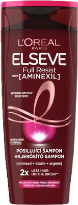 L'Oréal Paris Elseve Elseve Full Resist šampon, 250 mlVše o produktuDoplňující informaceHodnocení produktuStres, sezónní změny, česání a styling… to vše ovlivňuje pocit oslabených, tenčích vlasů, které mají tendenci skončit na vašem hřebenu. Trénujte odolnost vašich vlasů s posilující řadou Full Resist pro slabé vlasy s tendencí vypadávat.