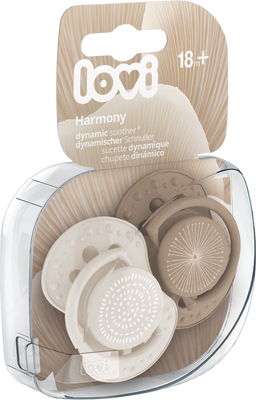 LOVI Silikonový dynamický dudlík HARMONY holka 18m+ 2 ksVše o produktuDoplňující informaceHodnocení produktuDynamický dudlík byl vytvořen ve spolupráci s neurologopedy, aby chránil sací reflex dítěte. Má symetrický tvar jako matčina bradavka. Unikátní dynamická konstrukce gumičky dudlíku je vyrobena z nestejnorodých vrstev silikonu a umožňuje sání dítěte v přirozeném rytmu.