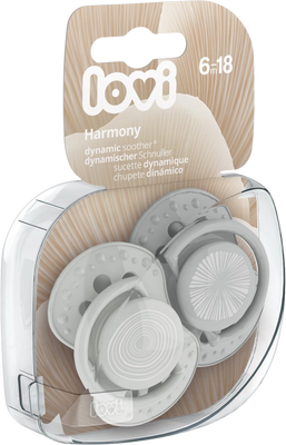 LOVI Silikonový dynamický dudlík HARMONY kluk 6-18m 2 ksVše o produktuDoplňující informaceHodnocení produktuDynamický dudlík byl vytvořen ve spolupráci s neurologopedy, aby chránil sací reflex dítěte. Má symetrický tvar jako matčina bradavka. Unikátní dynamická konstrukce gumičky dudlíku je vyrobena z nestejnorodých vrstev silikonu a umožňuje sání dítěte v přirozeném rytmu.