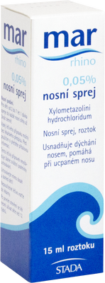 Přípravek mar rhino 0,05%, je nosní sprej, který se používá ke snížení otoku nosní sliznice při akutní rýmě, při záchvatu nadměrné tvorby hlenu způsobeného rýmou a při alergické rýmě, k urychlení uvolnění hlenů při zánětu vedlejších dutin nosních a při zánětu Eustachovy trubice společně s rýmou. Více informací