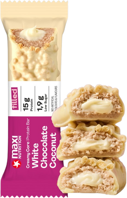 Maxi Nutrition Creamy Core Protein Bar white chocolate coconut 45 gVše o produktuDoplňující informaceHodnocení produktuMaxiNutrition Creamy Core – krémová proteinová tyčinka plná chuti! Dopřejte si lahodný a výživný snack, který vás zasytí a dodá vám 15 g kvalitních bílkovin kdykoli během dne. MaxiNutrition Creamy Core kombinuje jemně krémovou náplň s bohatou chutí a praktickým formátem, díky kterému si ji můžete vychutnat na cestách, po tréninku nebo jako rychlou svačinu. Má nízký obsah cukru, neobsahuje umělá barviva ani aromata, a přitom si zachovává plnou a vyváženou chuť.