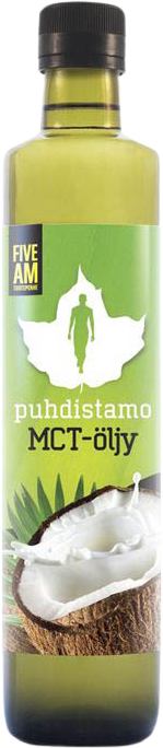 MCT olej Puhdistamo obsahuje 60 % kyseliny kaprylové (C8) = zdroj velmi rychlé energie, a 40 % kyseliny kaprinové = zdroj středně rychlé energie + podpora vitality.