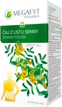 Čaj z listu senny (Sennae folium). Léčivý čaj. Rostlinný léčivý přípravek určený pro krátkodobou léčbu funkční zácpy. Více informací