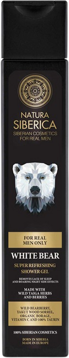 Natura Siberica MEN Super osvěžující sprchový gel „Lední medvěd“ – jedinečný nástroj, který nejen dokonale čistí a zvlhčuje pokožku, ale také účinně odstraňuje únavu, vymaže stopy nespavosti, pomáhá v těžkých chvílích zúčtování po divoce prožité noci a nabíjí energií na celý den!