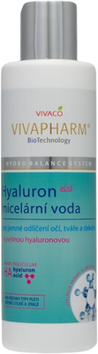 VivaPharm Micelární voda s kyselinou hyaluronovou 200 mlVše o produktuDoplňující informaceHodnocení produktuMicelární voda dokonale odstraňuje make up a nečistoty z očí, tváře, rtů a dekoltu. Zároveň šetrně čistí, hydratuje, tonizuje a zklidňuje pleť. Je vhodná pro všechny typy pleti, včetně citlivé a zralé. Díky svému složení nezanechává pleť mastnou. Součástí micelární vody jsou tzv. micely - makromolekuly, které okamžitě zachycují veškeré nečistoty a zbytky make-upu. Neobsahuje alkohol.