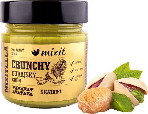 Mixit Mixitella - Křupavý dubajský krém s kataifi 220 gVše o produktuDoplňující informaceHodnocení produktuDubajská čokoláda dobývá svět a my jsme její luxusní náplň jednoduše zavřete do skleničky.