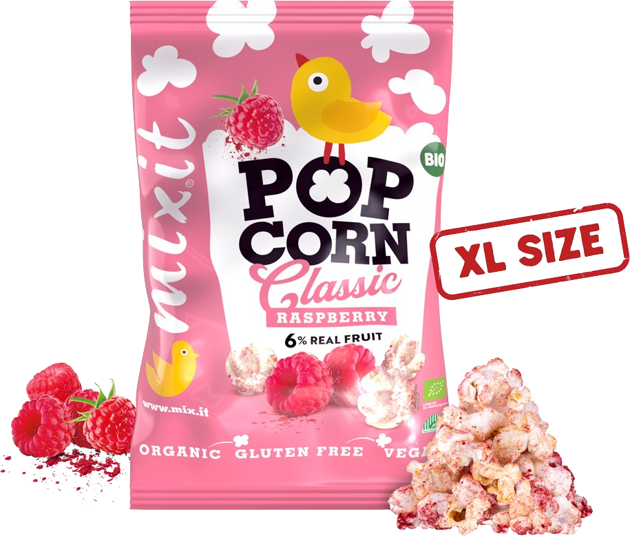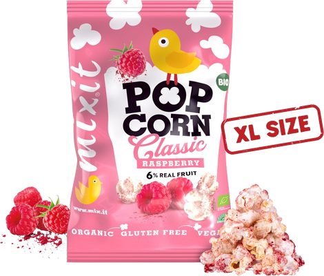 Nejstarší známé důkazy o popcornu pocházejí z Mexika a datují se až 5 600 let zpět. Bylo objevení popcornu dílem náhody? To nikdo neví. :-) Mixit malinový popcorn je však dílem pečlivě vybraných ingrediencí. Každé vypukané zrnko kukuřice jsme vlastnoručně vylepšili prachem z tolik oblíbené lyofilizované maliny. Zkrátka popcorn, který vás vyhoupne do ovocné nálady dřív, než řeknete puk!