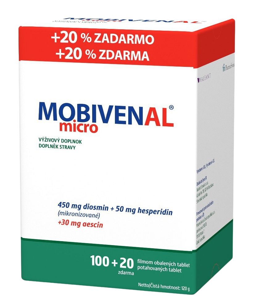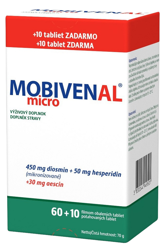 Doplněk stravy obsahující mikronizovaný diosmin, hesperidin a aescin (při pocitu těžkých nohou). Vhodný pro lidi s problémy s křečovými žilami a hemoroidů.
