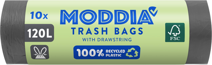 Moddia 120litrové odpadkové pytle jsou perfektním řešením pro velký úklid. Díky zatahovací pásce se s odpadky rozloučíte rychle, snadno a bez nežádoucího chaosu. Více informací