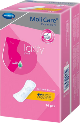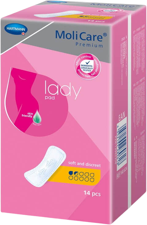 Inkontinenční vložky MoliCare Lady jsou určeny pro ženy s lehkým únikem moči. Jsou stejně pohodlné jako vložky menstruační, na rozdíl od nich ale mají více než 5× vyšší savost, a navíc pohlcují zápach. Zajistí tak na celý den pocit svěžesti a navrátí ztracenou sebedůvěru.