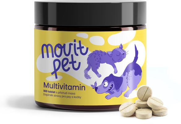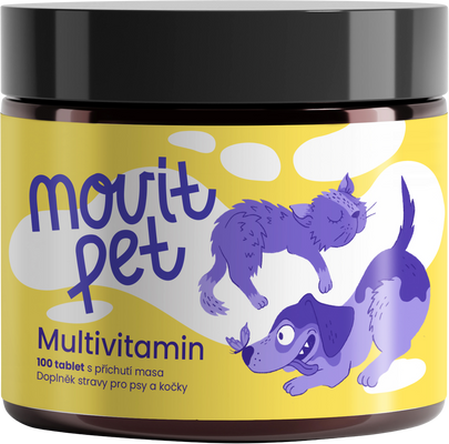 MOVit PET Multivitamin je komplexní doplňkové krmivo pro psy a kočky s obsahem všech důležitých vitaminů skupiny B, vitaminu A, C, D3 a E. Kombinace těchto látek přispívá k normální funkci imunitního systému, energetickému metabolismu a k podpoře zdravé kůže a srsti. Přípravek je vhodný pro mladá zvířata v růstu, seniory, aktivní jedince i zvířata v období rekonvalescence nebo při sníženém příjmu potravy.