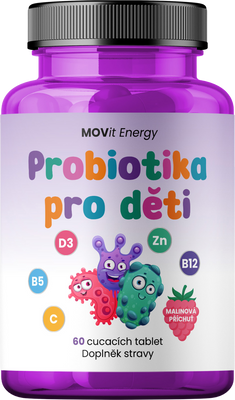 MOVit Energy Probiotika pro děti s vitamíny 60 tabletVše o produktuDoplňující informaceHodnocení produktuPrémiový doplněk stravy speciálně vyvinutý pro děti. Obsahuje přátelské probiotické bakterie Lactobacillus reuteri pro podporu imunity a trávení. Dále nechybí ani zinek nebo vitaminy C, D, B5 a B12 pro správný vývoj a silný imunitní systém.