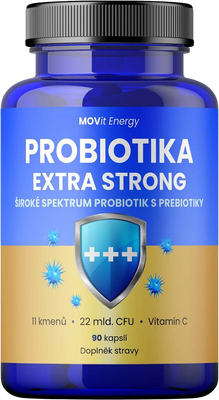 MOVit Probiotika EXTRA STRONG obsahuje komplex 11 kmenů laktobacilů a bifidobakterií a vitamin C, který přispívá k normální funkci imunitního systému Více informací