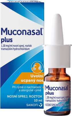 Muconasal® Plus je lék k nosnímu použití k úlevě od ucpaného nosu při běžných nachlazeních a alergické rýmě. Obsahuje tramazolini hydrochloridum. Čtěte pozorně příbalovou informaci a poraďte se s lékařem nebo lékárníkem.