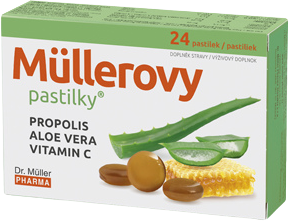 Müllerovy pastilky s obsahem propolisu, Aloe vera a vitaminu C podporují přirozenou obranyschopnost organismu. Více informací