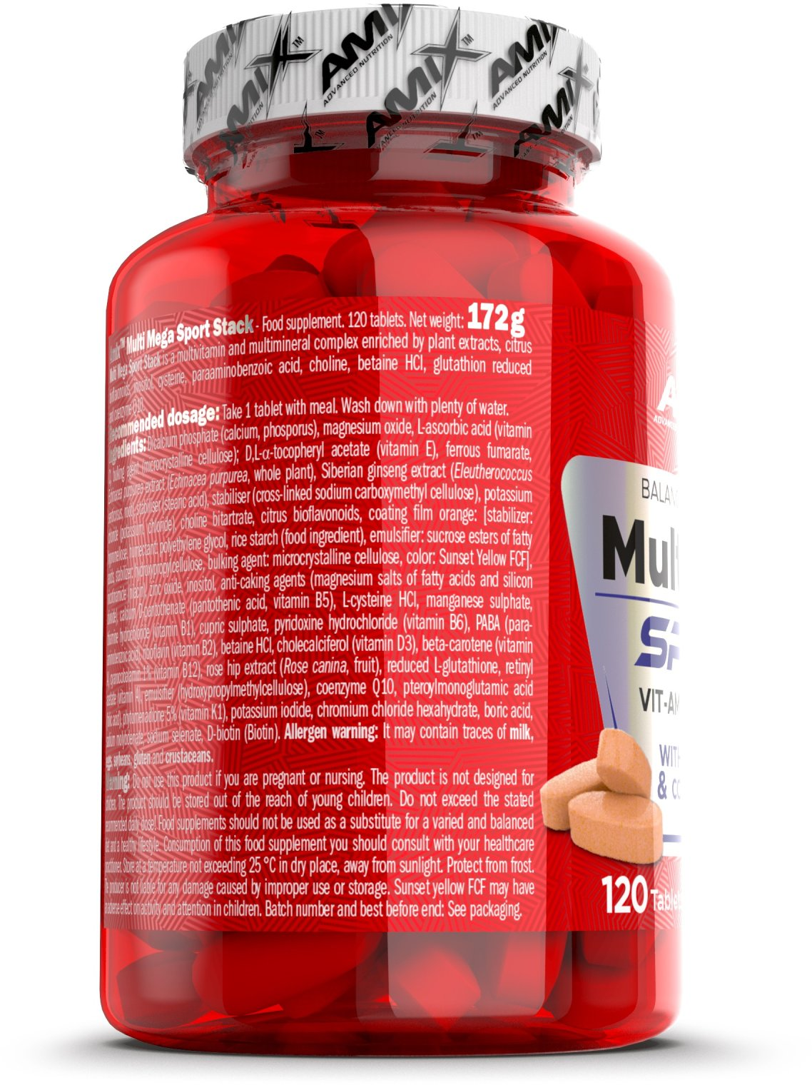Směs vybraných vitamínů a minerálních látek. Speciální Vit-Amix™ komplex obsahuje více než 40 důležitých vitaminů a minerálních látek s přídavkem Echinacea Anugustifolia. Multi Mega Stack je předurčen především pro aktivní sportovce a jedince s vysoce náročnou fyzickou a duševní aktivitu. Více informací