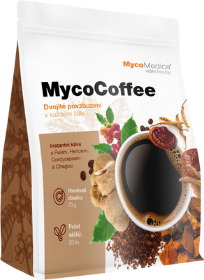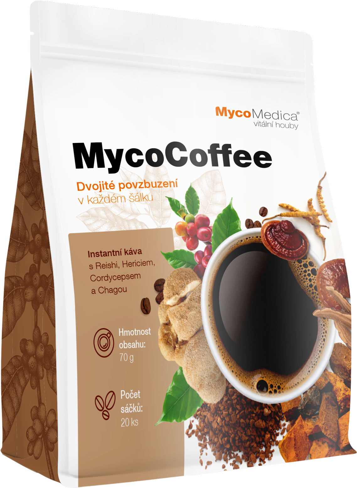 MycoCoffee je směs obsahující extrakty z hub jako Reishi, Cordyceps, Hericium a Chaga, které jsou tradičně využívány pro podporu vitality a celkové pohody. Více informací