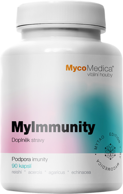 MyImmunity obsahuje směs vitálních hub Reishi, Cordycepsu, Shiitake a Agaricu spolu s čínskými bylinami. Reishi a Agaricus jsou tradičně užívané houby, ceněné pro své vlastnosti související s přirozenou obranyschopností organismu. Více informací