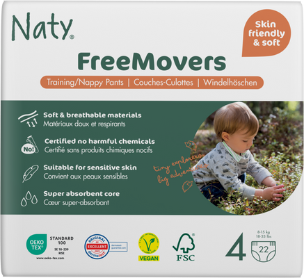 Šetrné, jemné, ekologické a nově i s mnoha praktickými a funkčními vylepšeními, to jsou oblíbené plenky švédské značky Naty. Natahovací plenkové kalhotky ocení odrostlejší děti, snadno se svléknou, takže jsou ideální při učení na nočník. Více informací