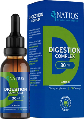 Natios Digestion Complex, Bylinné kapky v MCT oleji 30 mlVše o produktuDoplňující informaceHodnocení produktuBylinné kapky NATIOS jsou vyrobeny ze silných extraktů a jsou dodávány v MCT oleji. Nejedná se tedy jen o klasické alkoholické nálevy, ale o koncentrované extrakty bez zbytečné chemie, které jsou šetrné k žaludku, mají jemnou chuť a zároveň poskytují maximální účinek.