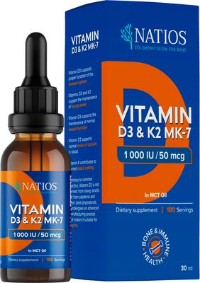 Elegantní řešení pro kosti i imunitu v jednom doplňku. NATIOS Vegan Vitamin D3 & K2 (MK‑7) kombinuje dva klíčové vitaminy s chuťově neutrálním MCT kokosovým olejem pro maximální vstřebatelnost a účinnost. Více informací