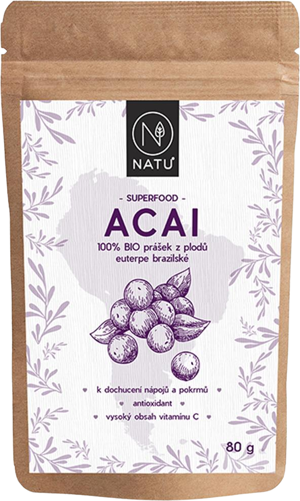 Açai je plod palmy rostoucí v amazonských deštných pralesích. Má tmavě fialovou barvu a stejně jako ostatní ovoce s tímto zbarvením je silným antioxidantem. Kromě toho je açai bohatý na obsah vitaminu C a minerální látky jako železo, fosfor a vápník. Více informací