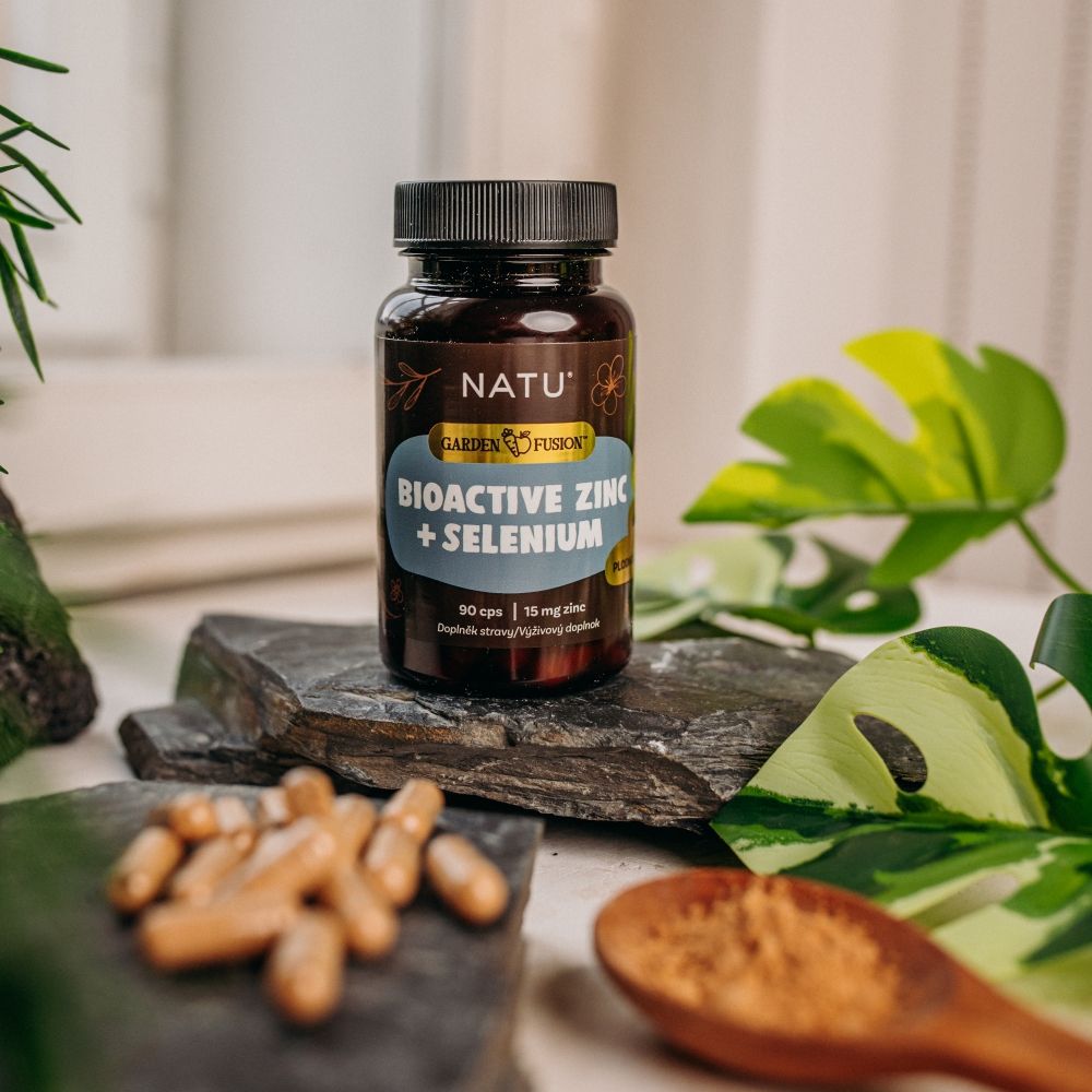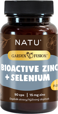 Natu Garden Fusion, Bioaktivní zinek 15 mg, selen, extrakt ze zeleného čaje 90 kapslíVše o produktuDoplňující informaceHodnocení produktuKaždá kapsle obsahuje 15 mg vysoce vstřebatelného zinku ve formě bisglycinátu, 55 μg selenu ve formě L-selenometioninu a 100 mg extraktu ze zeleného čaje Camellia sinensis. Kapsle obsahují zinek a selen ve vysoce vstřebatelných formách.