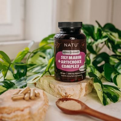 NATU ostropestřec extrakt nabízí kombinaci dvou rostlinných extraktů známých svým pozitivním vlivem na játra. První je Ostropestřec mariánský (Silybum marianum) - bylina s tisíciletou tradicí v péči o játra a žlučník. Jeho hlavní účinnou látkou je silymarin – komplex flavonolignanů (silybin, silydianin, silychristin), které mají silné antioxidační vlastnosti a napomáhají správné funkci jater a detoxikačním procesům.