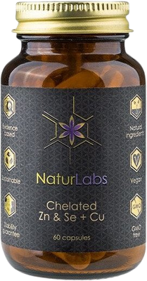 Naturlabs Zinek & Selen chelátové + Měď 60 kapslíVše o produktuDoplňující informaceHodnocení produktuKombinace zinek, selen a měď patří mezi základní mikronutrienty prospěšné pro normální funkci imunitního systému, hormonální rovnováhu i řadu metabolických procesů. Tento veganský doplněk stravy obsahuje minerály v organické chelátové formě. Jsou tak snadno vstřebatelné a perfektně biologicky dostupné.
