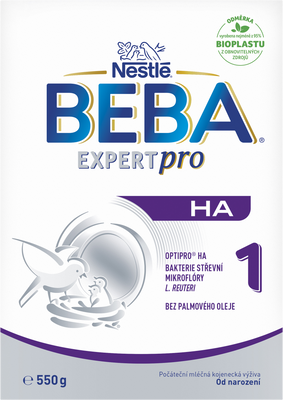 BEBA® EXPERTpro HA 1 je mléčná výživa určena pro děti od narození. Obsahuje unikátní kombinaci složek a částečně hydrolyzovanou bílkovinu získanou procesem OPTIPRO® HA, probiotické bakterie L. reuteri, vitamíny* a minerální látky* pro uspokojení potřeb vašeho děťátka. OPTIPRO® HA je speciální proces k získání 100% syrovátkové, částečně hydrolyzované bílkoviny. L. reuteri jsou bakterie mléčného kvašení, které se nacházejí ve střevní mikroflóře kojených dětí. BEBA® EXPERTpro HA 1 mléčná výživa neobsahuje palmový olej.