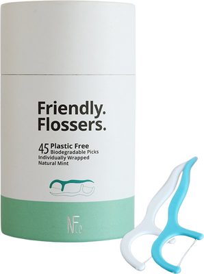 Natural Family Zubní nit s párátkem Friendly Flossers 45 ksVše o produktuDoplňující informaceHodnocení produktuNFco Friendly Flossers - navlečená zubní nit bez plastů doplňuje nabídku biologicky rozložitelných zubních kartáčků, s přírodní mátovou příchutí a bezplastovým držákem vyrobeným z kukuřičného škrobu.