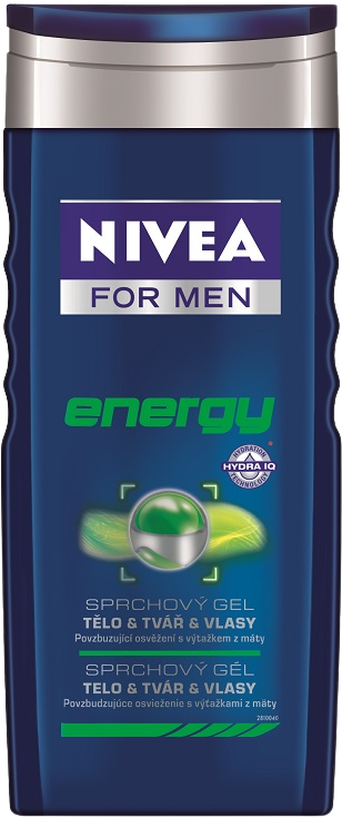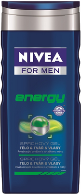 NIVEA MEN Sprchový gel pro muže Energy na tělo, tvář a vlasy s mužnou vůní zajistí dlouhotrvající pocit svěžesti.