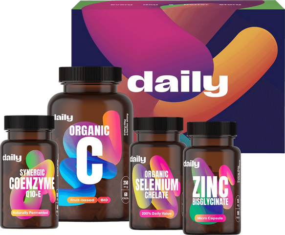 Základní každodenní výbava pro moderní longevity životní styl. Balíček Daily Longevity kombinuje přírodní vitamin C, klíčové antioxidanty a minerály se synergickým CoQ10, který je ikonickou součástí longevity rutiny. Jednoduchý, funkční a ideální jako stabilní základ pro každý den.