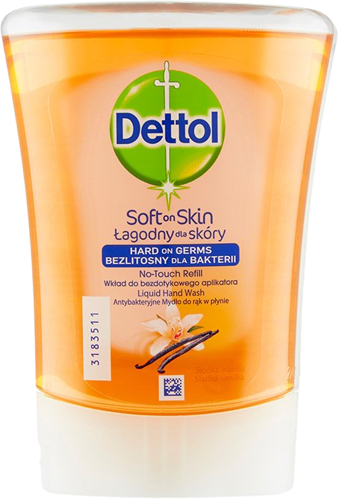 Náplň do bezdotykového dávkovače mýdla Dettol s jemnou vůní vanilky. Více informací