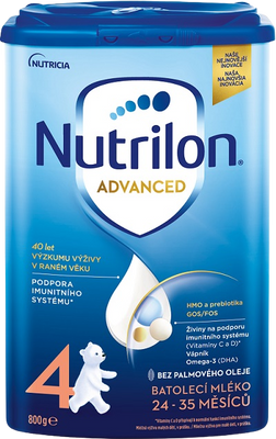 Výrobek je určen pro výživu dětí od 2 let věku. Nutrilon 4 Advanced má být součástí smíšené a vyvážené stravy dítěte a není náhradou mateřského mléka. Pro zdraví dětí je důležité důsledné dodržování návodu na přípravu i uvedených doporučení. Nevhodné pro děti do 1 roku věku. Kojení je pro děti nejlepší. Podporujeme doporučení WHO – plné kojení v prvních 6 měsících věku a pokračování až do 2 let a dále, spolu se zaváděním bezpečné a vhodné doplňkové stravy. Mléčná výživa malých dětí, v prášku.