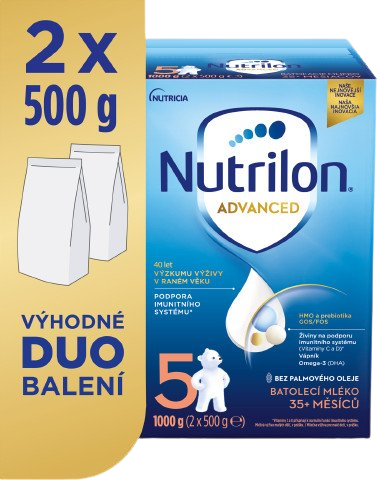 Výrobek je určen pro výživu dětí od 35. měsíce věku. Nutrilon 5 Advanced má být součástí smíšené a vyvážené stravy dítěte a není náhradou mateřského mléka. Pro zdraví dětí je důležité důsledné dodržování návodu na přípravu i uvedených doporučení. Nevhodné pro děti do 1 roku věku. Kojení je pro děti nejlepší. Podporujeme doporučení WHO – plné kojení v prvních 6 měsících věku a pokračování až do 2 let a dále, spolu se zaváděním bezpečné a vhodné doplňkové stravy. Mléčná výživa malých dětí, v prášku.