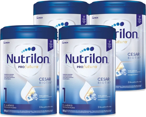 Nutrilon Profutura CESARBIOTIK 1 počáteční kojenecké mléko 4 x 800 gVše o produktuDoplňující informaceHodnocení produktuPočáteční mléko je naše výživově kompletní receptura*, bez palmového oleje. V praktickém balení pro Vás! Nový systém otevírání s pojistkou zajišťuje jednodušší a hygienickou manipulaci s balením, eliminuje nežádoucí kontakt s mléčným práškem a zaručuje snadné opětovné zavření obalu. *Jak požadují právní předpisy pro počáteční kojeneckou výživu.