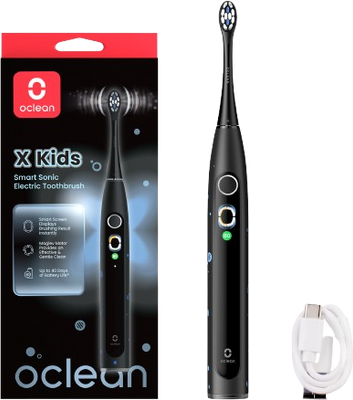 Oclean X Kids Black dětský sonický kartáček, černýVše o produktuDoplňující informaceHodnocení produktuOclean X Kids chytrý sonický elektrický kartáček pro děti a teenagery
