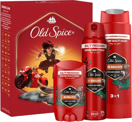 Old Spice Lumberjack dárková sada pro muže s deodorantem ve spreji, tuhým deodorantem a sprchovým gelem Bearglove. Více informací