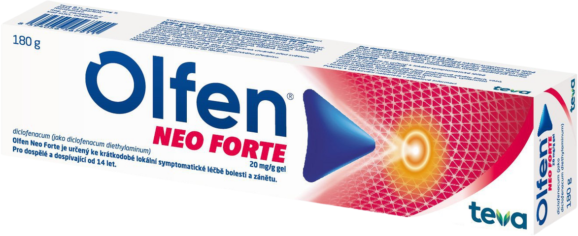 Před použitím si pozorně přečtete příbalovou informaci. Olfen Neo Forte, gel je léčivý přípravek ke kožnímu podání, obsahuje účinnou látku diclofenacum diethylaminum. Olfen, gel a Olfen, 140 mg léčivá náplast jsou léčivé přípravky ke kožnímu podání, obsahují učinnou látku diclofenacum natricum.