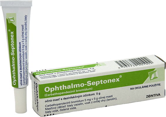 Léčivá látka: Carbethopendecinii bromidum 5 mg v 5 g oční masti.