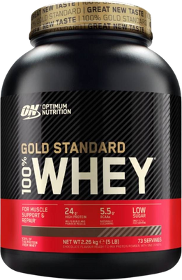 Protein 100% Whey Gold Standard je nejprodávanější vícesložkový syrovátkový protein na světě. Pyšnit se může až 11-násobným titulem ,,protein roku", a to oprávněně! Obsahuje unikátní kombinaci syrovátkového izolátu, hydrolyzátu a koncentrovaného syrovátkového proteinu, které zajišťují maximální vstřebatelnost bílkovin. Ta je podpořena i přítomností trávicích enzymů. Díky tomu v jedné dávce (31 g) nabízí až 24 g prémiových bílkovin, které podporují růst svalové hmoty, a 5,5 g přirozeně se vyskytujících BCAA. Ty zajistí rychlejší regeneraci poškozeného svalstva a dodají vyčerpanému tělu dostatek energie. Oceňovaný Whey Gold Standard je dostupný v několika lahodných příchutích a zaručeně vás potěší i nízkým obsahem sacharidů, cukrů, tuků a dalších nežádoucích složek. Svěřte se do rukou tomu nejlepšímu z nejlepších!