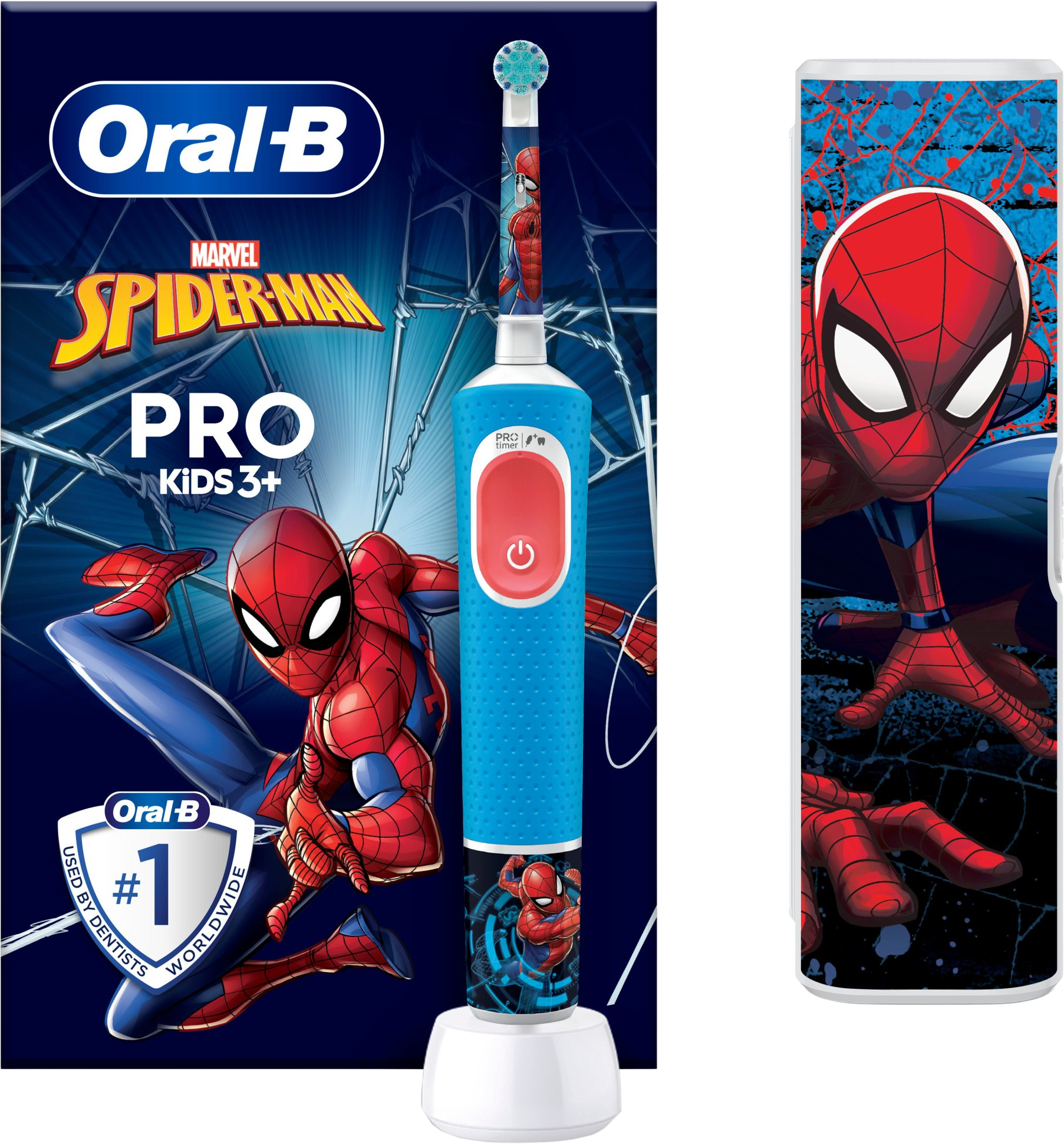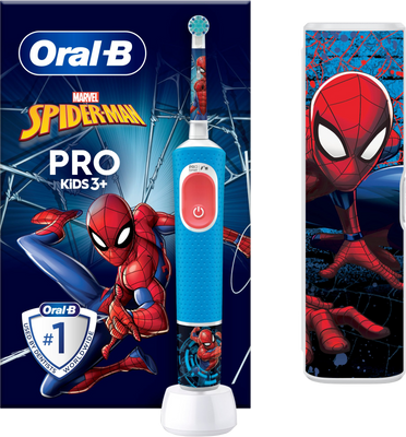 Oral-B Pro Kids Spiderman elektrický zubní kartáček s designemVše o produktuDoplňující informaceHodnocení produktuElektrický zubní kartáček Oral-B Pro Kids, který doporučují zubní lékaři pro děti od 3 let, čistí zuby jemně a účinně. Tento kartáček má 2 režimy čištění včetně unikátního jemného režimu pro děti, takže dětské zoubky čistí opravdu šetrně.