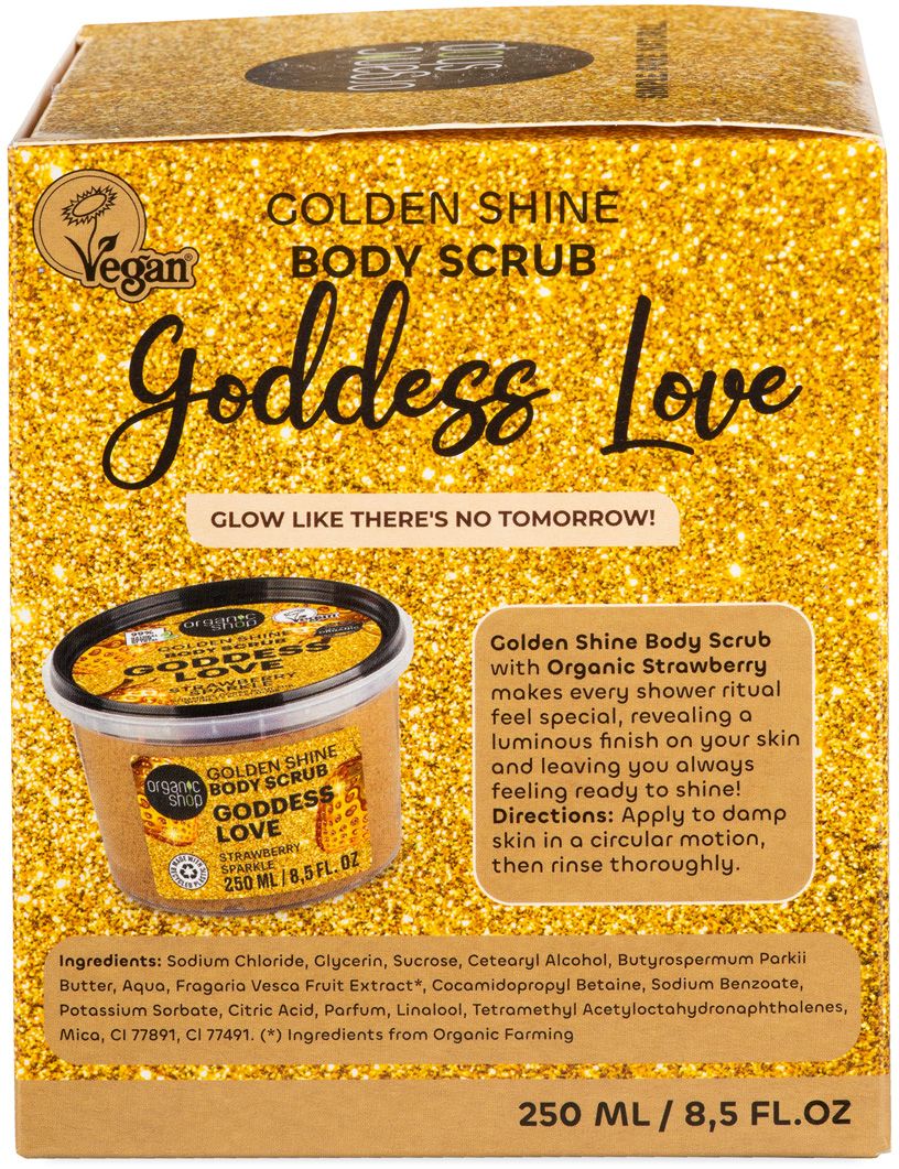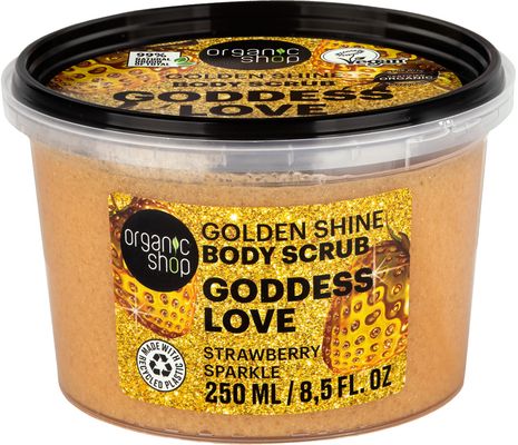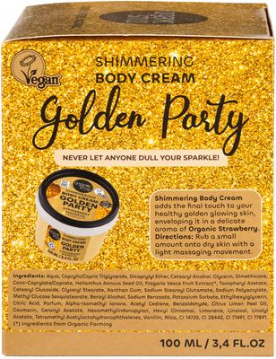 Golden shine tělový peeling: Sodium chloride, glycerin, sucrose, cetearyl alcohol, butyrospermum parkii butter, aqua, fragaria vesca fruit extract*, cocamidopropyl betaine, sodium benzoate, potassium sorbate, citric acid, parfum, linalool, tetramethyl acetyloctahydronaphthalenes, mica, ci 77891, ci 77491.