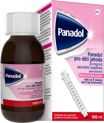 Panadol pro děti obsahuje paracetamol, látku proti bolesti (analgetikum) a ke snížení horečky (antipyretikum). Účinek se dostavuje do 30 minut. Je vhodný pro děti od 3 měsíců do 12 let, má jahodovou příchuť. Více informací