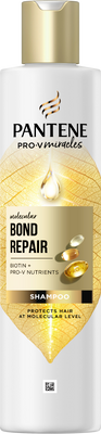 Pantene Pro-V Miracles Molecular, Bond Repair, Šampon s biotinem 250 mlVše o produktuDoplňující informaceHodnocení produktuPANTENE PRO-V šampon na vlasy Molecular Bond Repair s koncentrovaným složením je obohacen o biotin a 3krát více živin Pro-V. Šampon pomáhá chránit vlasové vazby na molekulární úrovni a zanechává vlasy viditelně zdravější a regenerované. Navíc tato recyklovatelná láhev na šampon je vyrobena z recyklovaného plastu, s výjimkou víčka a barviv. Dopřejte vašim vlasům jedinečnou péči od značky PANTENE PRO-V.