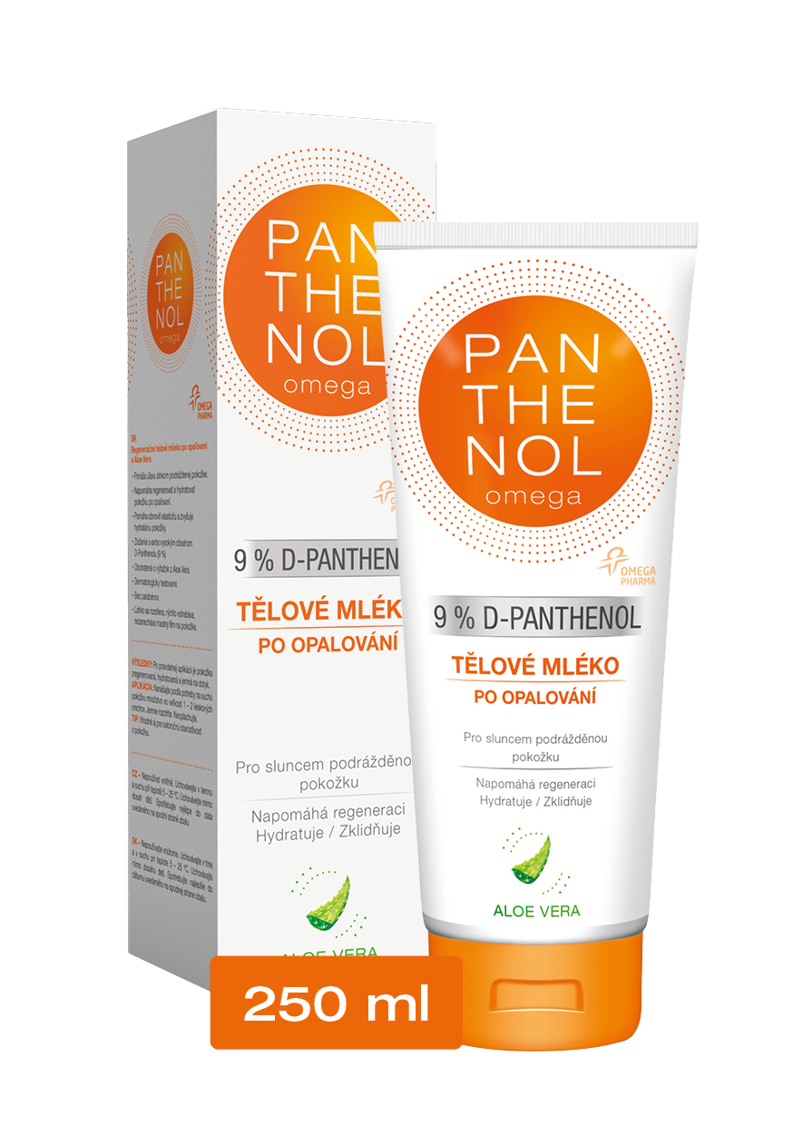 - Chladivá pěna ve spreji Panthenol Omega s 10% obsahem D-panthenolu a vitamíny A, E, F přináší maximální úlevu pokožky po opalování. Příjemně chladí a podporuje regeneraci pokožky. Díky formě spreje se přípravek snadno nanáší na celé tělo.
