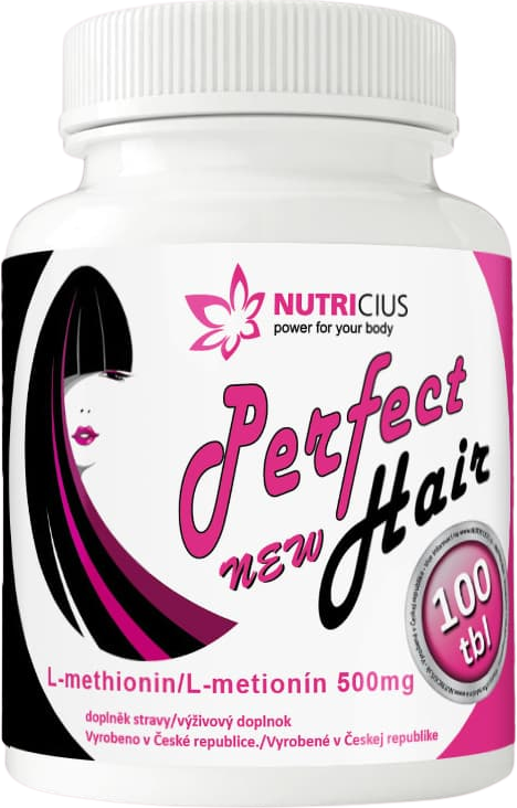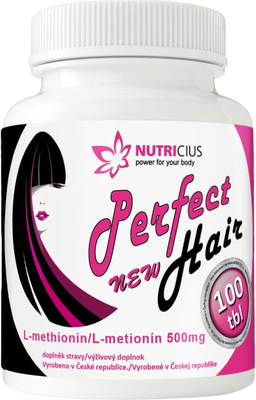 Přípravek Perfect HAIR new obsahuje esenciální aminokyselinu L-methionin, která musí být tělu dodána potravou, jelikož ji lidský organismus nedokáže vytvořit. L-methionin je jednou z esenciálních aminokyselin, která se podílí na biosyntéze řady bílkovin.