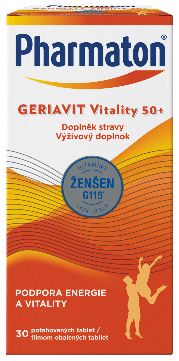 Přípravek Pharmaton® Geriavit kombinuje vitamíny, minerály, stopové prvky a ženšen v poměru, který zlepšuje zdraví a obnovuje životní energii. Obsahuje jedinečný standardizovaný výtažek ženšenu G115® o vysoké kvalitě a čistotě. Je vhodný v situacích, kdy stres, nekvalitní strava a onemocnění kladou dodatečné nároky na výživu a kdy je nutno doplňovat vitamíny a minerály.