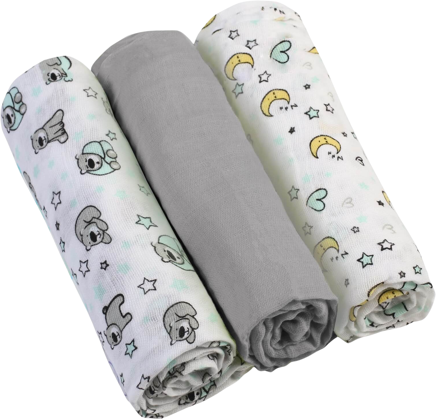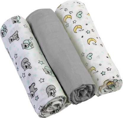Tyto mušelínové plenky jsou tak jemné a příjemné na dotek, že si je zamilujete vy i miminko. Jsou vyrobeny ze 100% bavlny a nedráždí citlivou dětskou pokožku. Jsou to naši každodenní pomocníci při kojení, na spaní pod hlavičku i jako osuška po koupání.